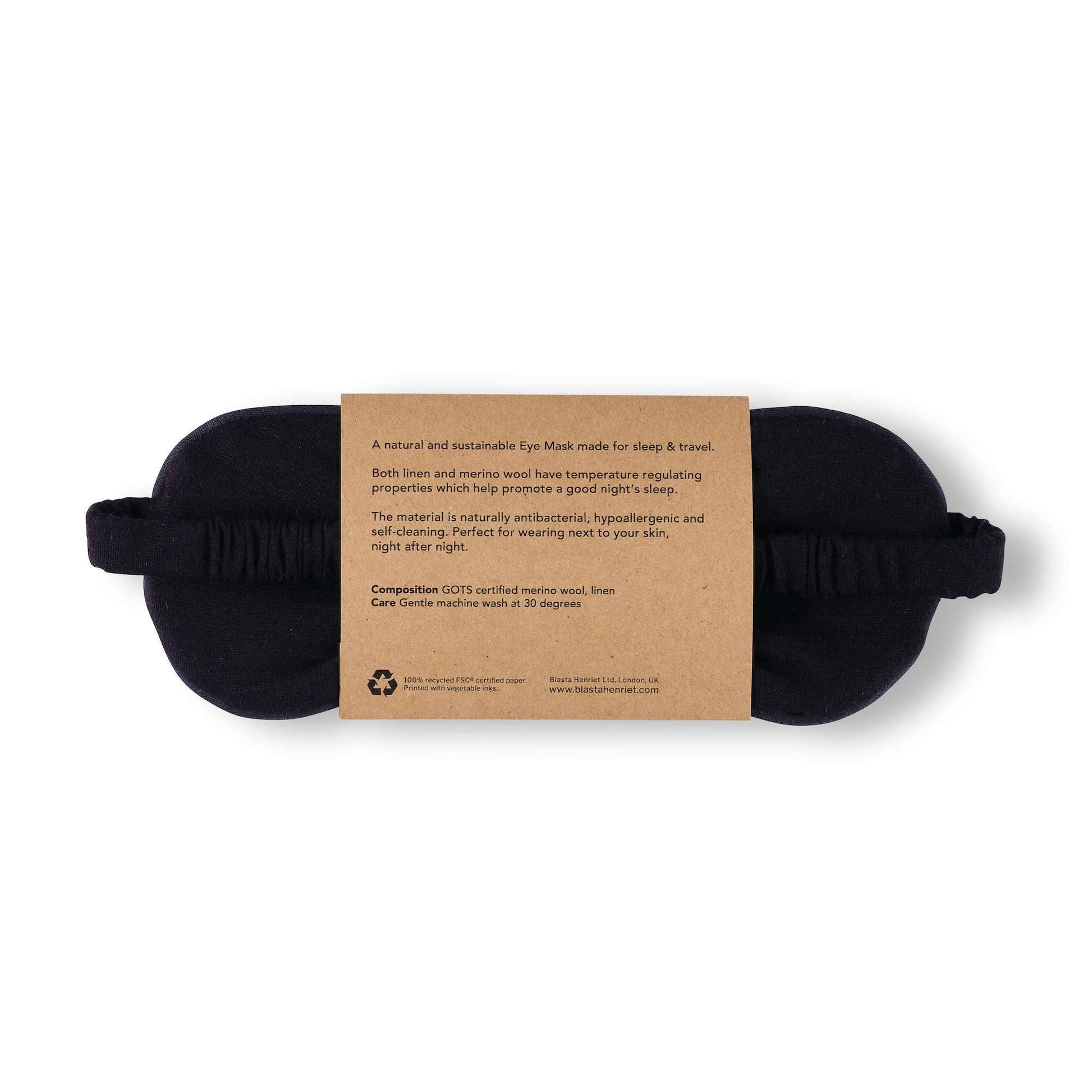 Perfect as a stocking filler or thoughtful gift, this luxurious eye mask is the ideal treat for a restful night's sleep! A sleep Eye Mask that is 'just right' Made from a luxurious mix of linen and the softest possible organic merino wool. Both linen and merino wool have temperature regulating properties which helps promote a good nights sleep. The material is naturally antibacterial, breathable and completely free from chemicals - making it perfect to wear next to your skin. The merino wool covered elastic band is soft and stretchy, and the padded front provides a complete blackout experience.