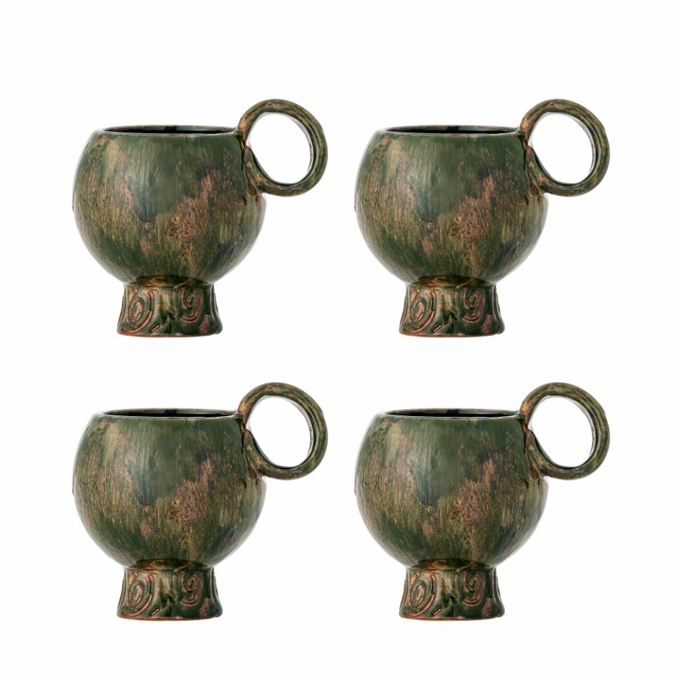 The Avonlea Cup by Bloomingville is made of stoneware with reactive glaze in shades of green. The Cup has a raised foot and a round handle.The nature of the glaze can cause variations in color, ensuring each Cup is unique.