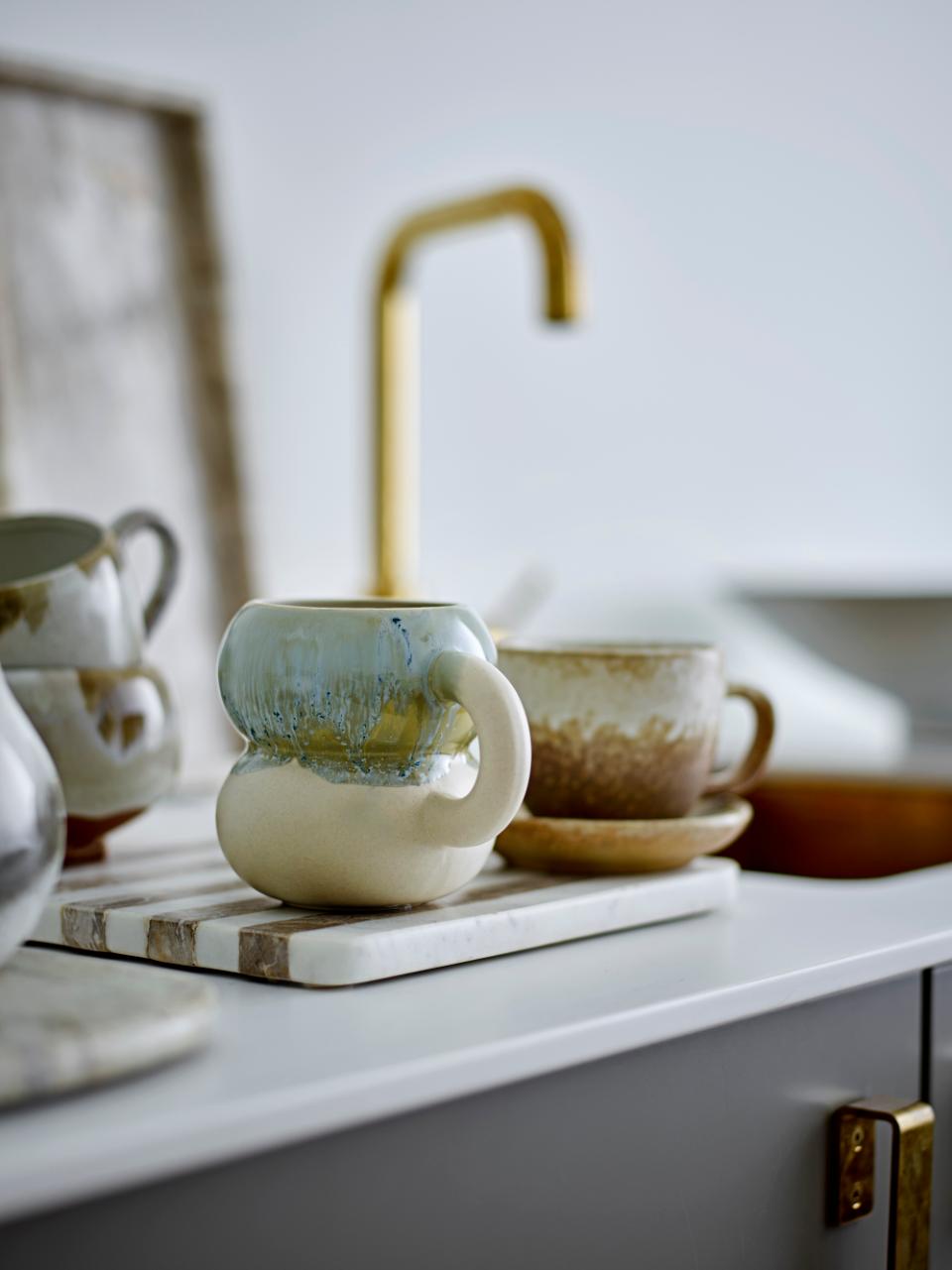 The Luna Cup by Bloomingville is made of stoneware with an elegant curved shape and a reactive glaze in blue tones. The glaze flows gently across the surface, creating beautiful, natural variations in colour and texture, giving each mug its own unique expression.