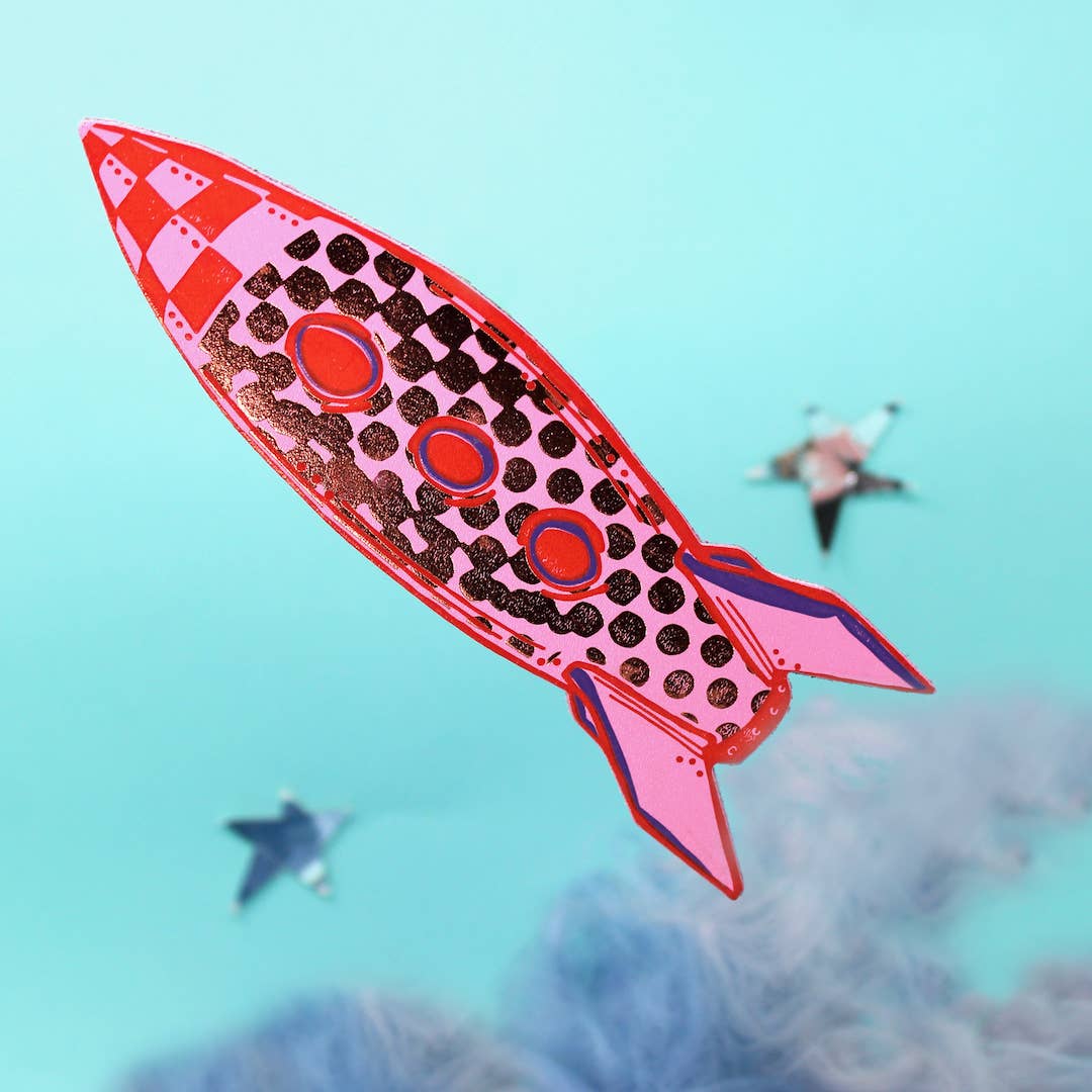 100% Genuine Leather Bookmark | Designed & Made in the United Kingdom | Hand foiled and embossed Our Rocket Bookmark has landed. Embossed with 'I need more space' on the reverse. Our bookmarks are designed with fun and functionality in mind. Each piece is carefully crafted to create a striking and multifaceted look that is sure to make a statement. We have combined both shiny and matte foil to each design, creating depth and high impact to elevate your reading experience. Genuine leather double sided bookmark. The leather is sourced from a family run Scottish tannery using skins sourced as a by product from the meat and dairy industry. Embossed and assembled in Scotland. Height 20cm