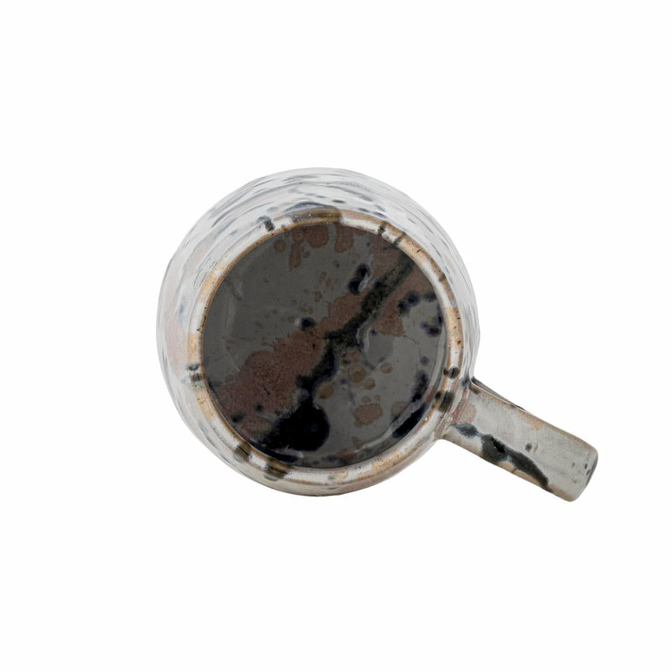 The Winnie Mug by Creative Collection is a set of four stoneware mugs with a reactive glaze. Each mug features a beige base with fluid black patterns and soft accents in rose and green. Small variations in pattern and color intensity may occur, making each piece unique.